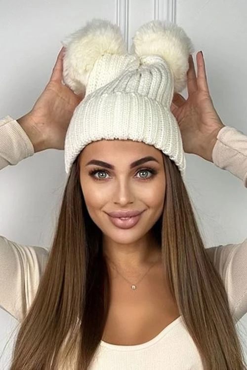Дамска шапка с два помпона