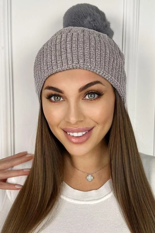 Дамска зимна шапка с помпон